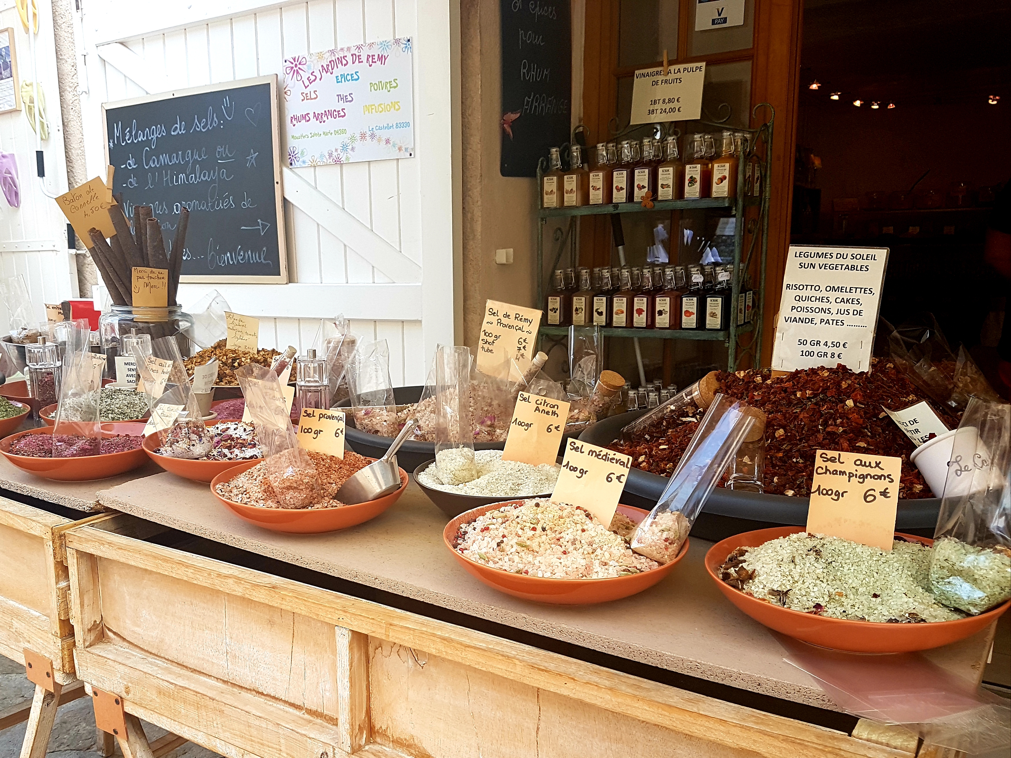 Le dernier jour dans le sud de la France, nous avons visité le Castellet, un vieux village idyllique, perché au bord d’une falaise, où les chemins sont pavés et pentus et les vues sont incroyables. C’était mon autre endroit préféré. En plus des boutiques qui vendait du savon, des robes et des cigales artisanales, nous avons trouvé une boutique qui offrait une variété colorée de sels et d’épices de la région. L’architecture protégée du village et les paysages environnants m’ont transporté à un époque où la vie était plus simple et je me sentais vraiment en paix.