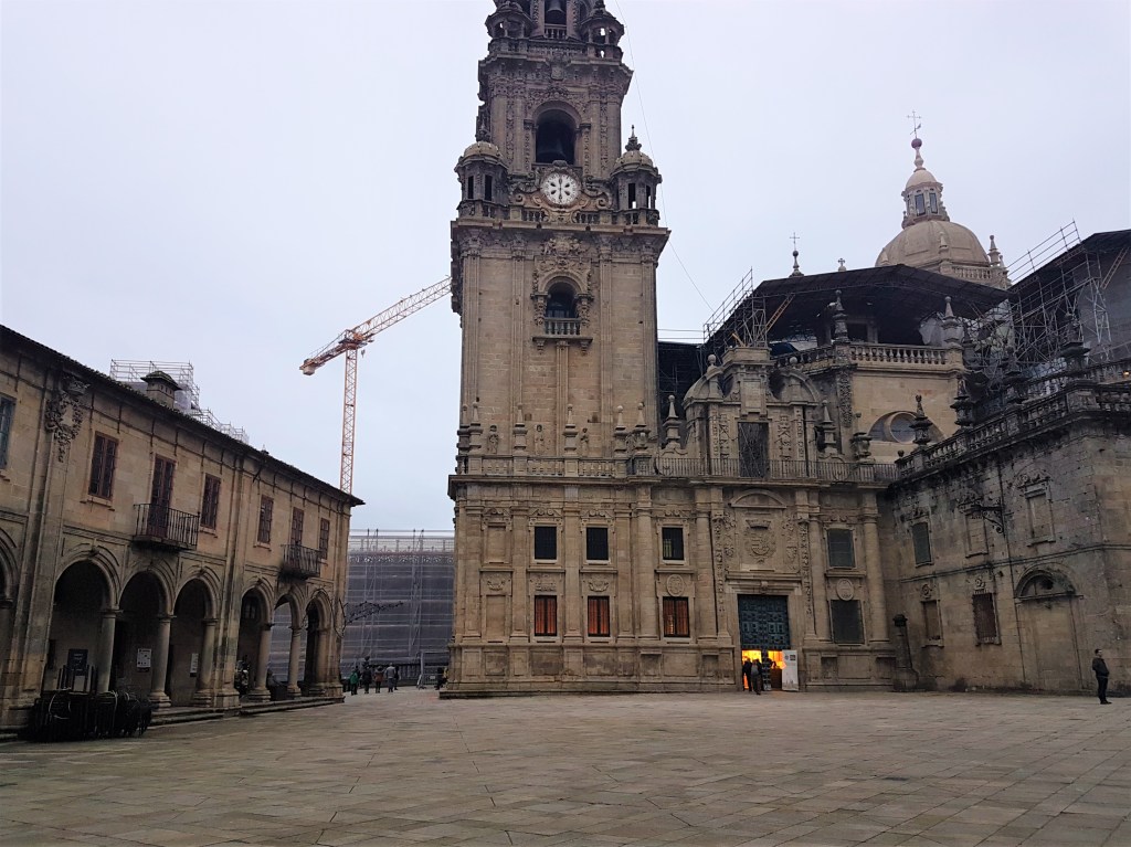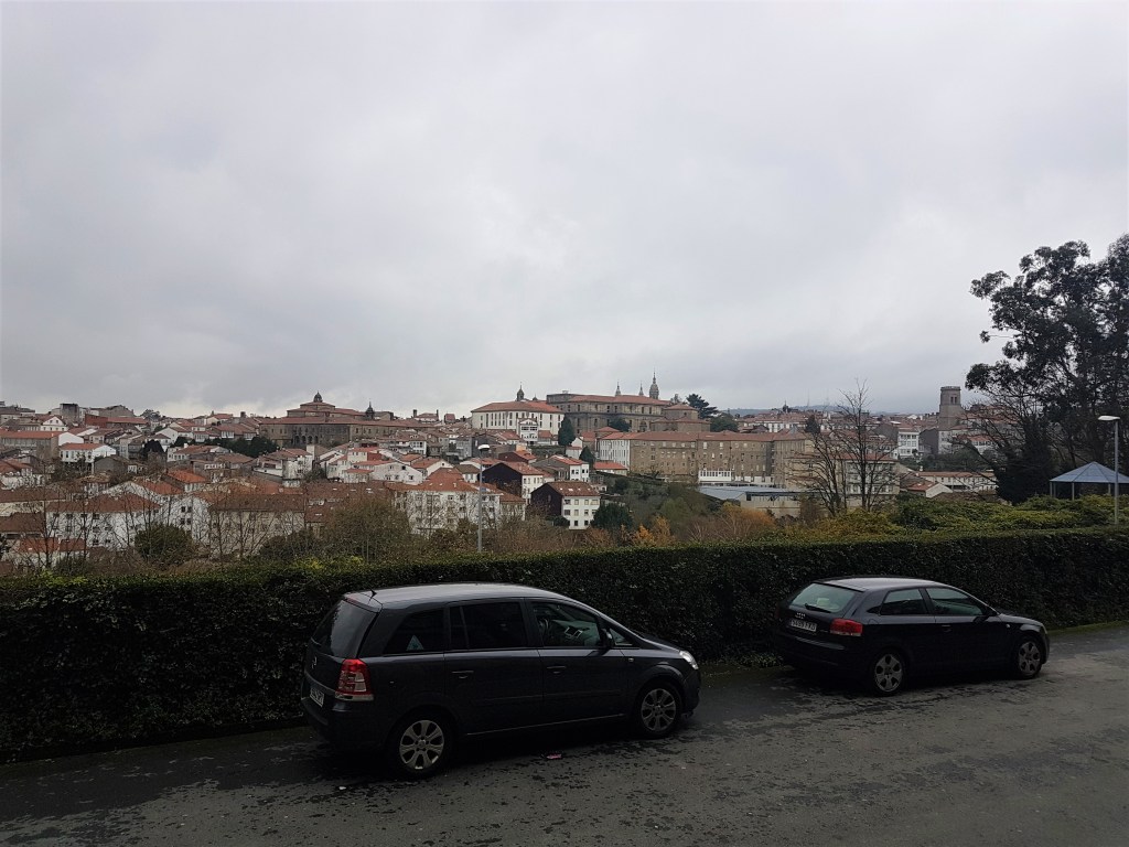 Después de darnos una vuelta por una estación de autobuses para ir al baño y comer algo, fuimos directamente a Santiago de Compostela, La Coruña. Nos quedamos en el Albergue del Seminario Menor, un edificio impresionante que solía funcionar como centro de formación eclesiástica y secular. Ahora sus puertas están abiertas a peregrinos y visitantes de la ciudad y las vistas de la entrada principal son maravillosas. Fue mi primera vez en un albergue y me quedé impresionada por la calidad de los servicios baratos que se ofrecen. Como edificio respetable, no es un albergue para ellos que quieren ir de fiesta, así que dormí muy bien.