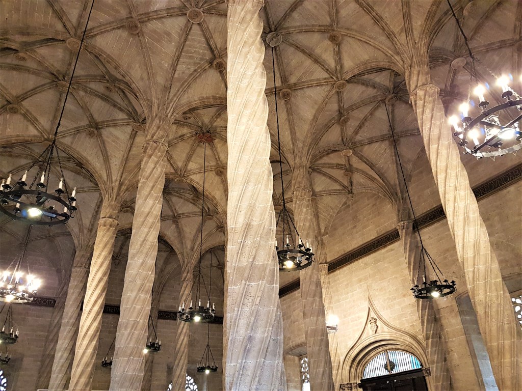 Este lugar es precioso y solo cuesta dos euros para la entrada (una si eres estudiante o pensionista). Aquí se realizaban las transacciones mercantiles (originalmente se enfocaron en la seda, de ahí su numbre) y hoy en día se reconoce como uno de los más famosos monumentos del gótico civil en España. En el centro hay un patio de naranjos, rodeado de varios salónes. Sus interiores demuestran un ejemplo de arquitectura bellísima, como la columnas que os he enseñado arriba.
