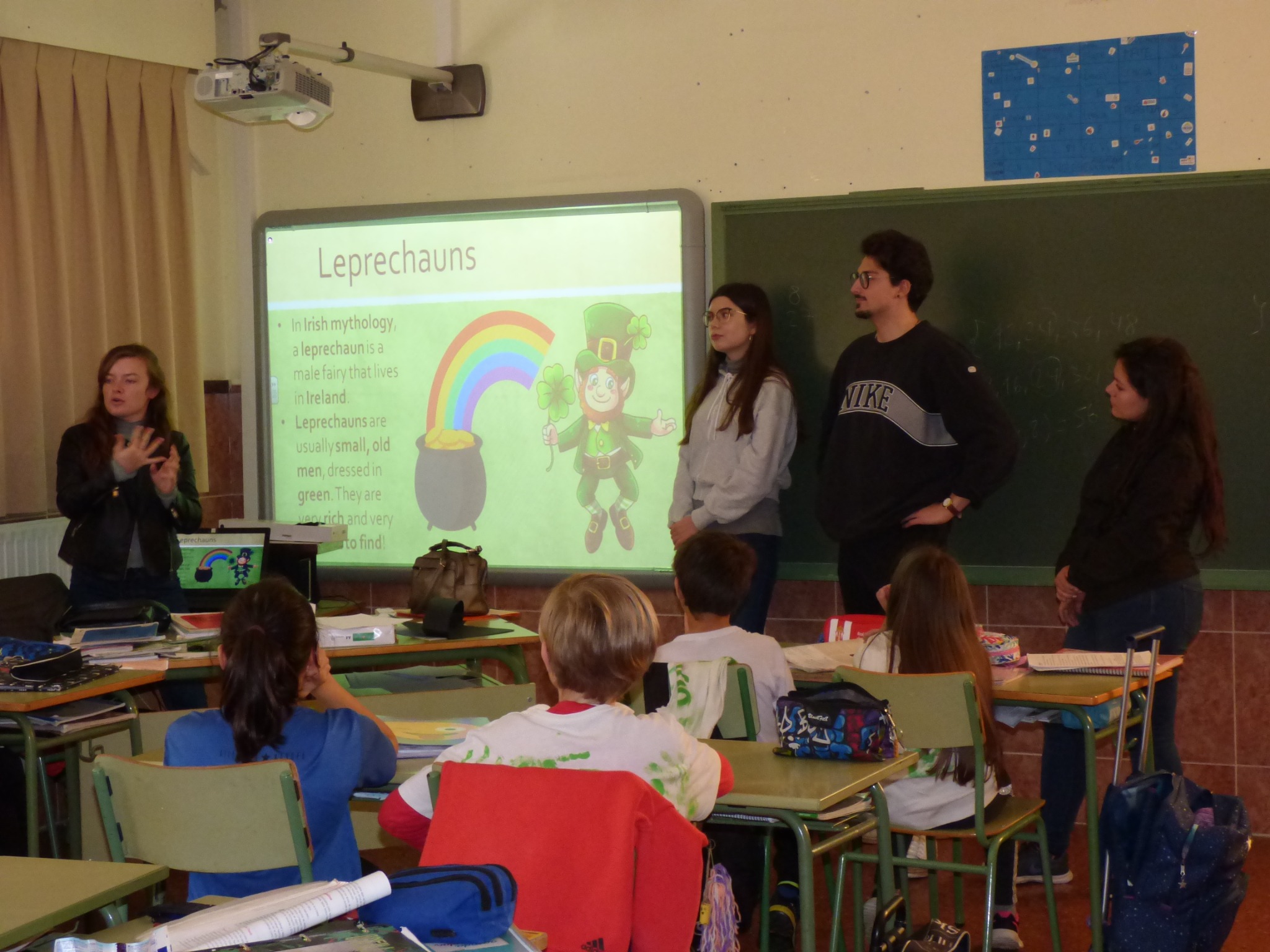 Yo me apunté porque, como auxiliar de conversación inglesa, quería dar esta oportunidad a una escuela donde no hay auxiliar con quien practicar y también para ganar más experiencia en el dominio de enseñanza. No hacía falta que se tuviera tal experiencia pero me ayudó cuando tuve que presentarme a las clases y hablar con ellos sobre Irlanda.