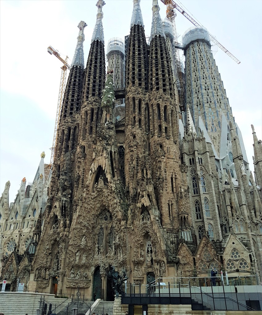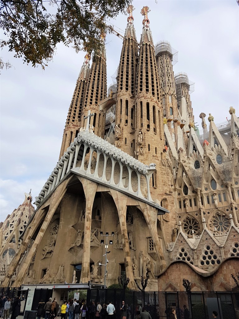 Como era de esperar, el primer lugar que visité fue la Sagrada Familia. Podéis fácilmente coger el metro que os llevará directamente a la basílica. De hecho me sorprendió verla situada allí cuando salí de la estación de metro, estrechamente rodeada de calles y edificios. Al principio no me deslumbró, tal vez por las obras de construcción y el hecho de que, aunque había tanto que apreciar, no fue fácil verlo bien.